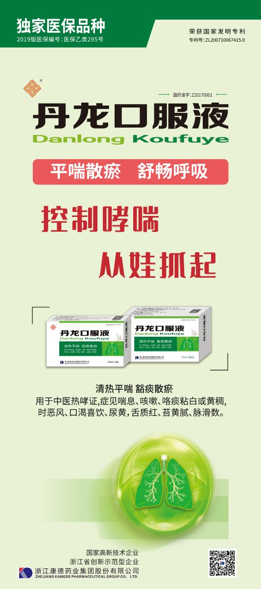 康德藥業(yè)是一家集藥品研發(fā)、生產(chǎn)和銷售于一體的國(guó)家高新技術(shù)企業(yè),秉承“健康至上,立德為民”的企業(yè)宗旨,一直致力于兒童創(chuàng)新藥物研究開(kāi)發(fā),成果顯著。國(guó)家醫(yī)保專利產(chǎn)品丹龍口服液是我國(guó)實(shí)行藥品上市許可持有人制度(MAH)后首個(gè)獲批上市的創(chuàng)新中成藥,在傳承中醫(yī)精華的基礎(chǔ)上,提出“氣血同治,暢通氣道”的創(chuàng)新中醫(yī)治療理論,產(chǎn)品在宣降肺氣、止咳平喘對(duì)癥治療基礎(chǔ)上,注重清痰、化瘀、祛邪,具有活血化瘀、宣降肺氣、清熱化痰、解除痙攣、調(diào)暢氣道、止咳平喘等功效,為成人及兒童哮喘病患者提供全新的安全有效治療方案。
