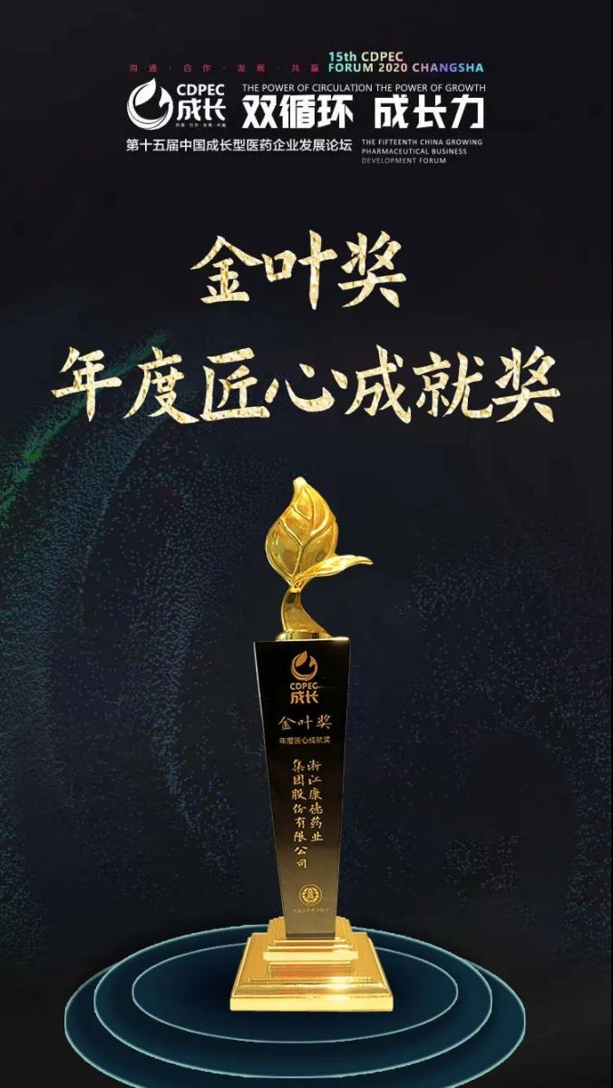 “金葉獎(jiǎng)•年度匠心成就獎(jiǎng)”,旨在鼓勵(lì)獲獎(jiǎng)企業(yè)在品牌發(fā)展的過(guò)程中,以工匠之心不斷打磨企業(yè)和產(chǎn)品、展現(xiàn)金牌品質(zhì)、綻放發(fā)展生命力、以孜孜不倦的探索和追求為行業(yè)發(fā)展注入新動(dòng)力的企業(yè)。2020年的醫(yī)藥行業(yè)風(fēng)云迭起、精彩紛呈,康德藥業(yè)集團(tuán)緊跟新時(shí)代要求,以創(chuàng)新驅(qū)動(dòng)為引領(lǐng),迎接機(jī)遇和挑戰(zhàn),以新氣象、新?lián)?dāng)書寫新時(shí)代下康德藥業(yè)集團(tuán)新作為,助力中國(guó)醫(yī)藥行業(yè)健康發(fā)展。