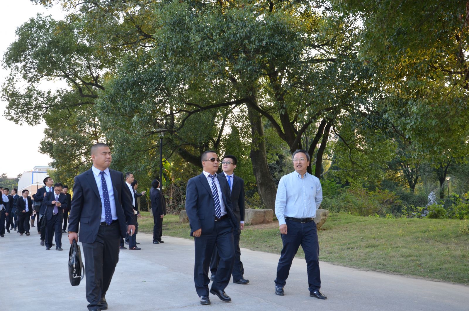 (圖一:在康德藥業(yè)集團總經(jīng)理胡增仁先生的陪同下參觀廠區(qū))